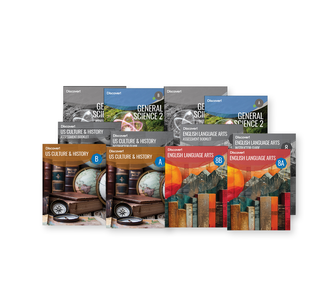 Eighth-grade students explore big ideas and deeper connections with the Discover! curriculum. Hands-on science, literary analysis, and historical inquiry build critical thinking and communication skills. From multicultural literature to U.S. history through 1865, students engage with diverse perspectives, strengthen research abilities, and connect academic learning to real-world understanding and identity.